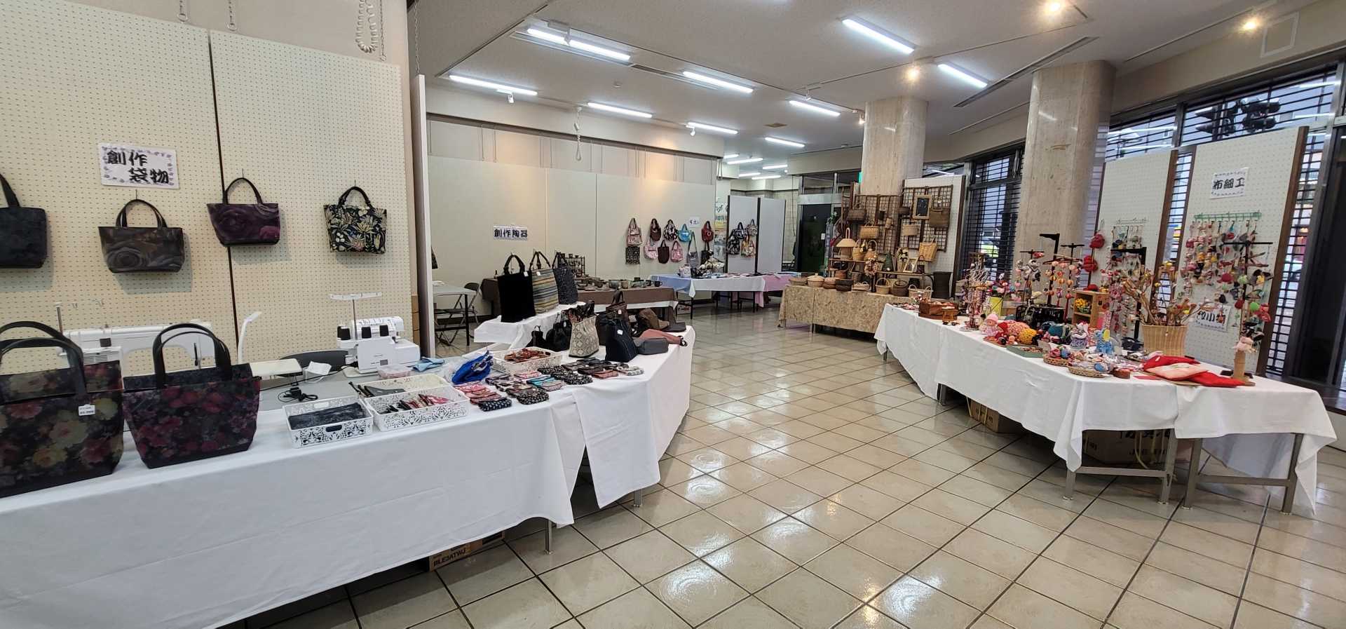 陶芸、籐工芸、手づくりネクタイ、創作袋物、布小物他の展示即売!